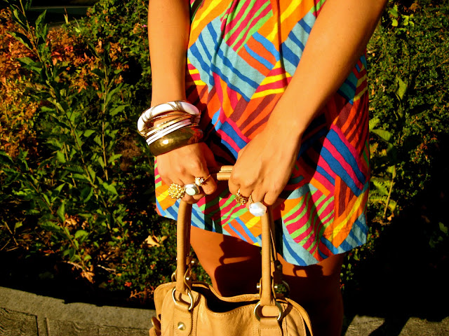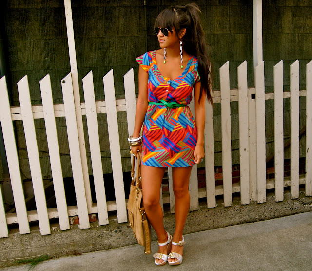 Post fashion week I've been experiencing an insatiable desire to purchase/wear neutral tones, delicate lace pieces, and military inspired clothing. However, while meandering around the store the other day, the colorful print on this little dress caught my eye and literally begged to be tried on. Although it could not be farther from what I was originally searching for, I caved and was forced to give it a home.